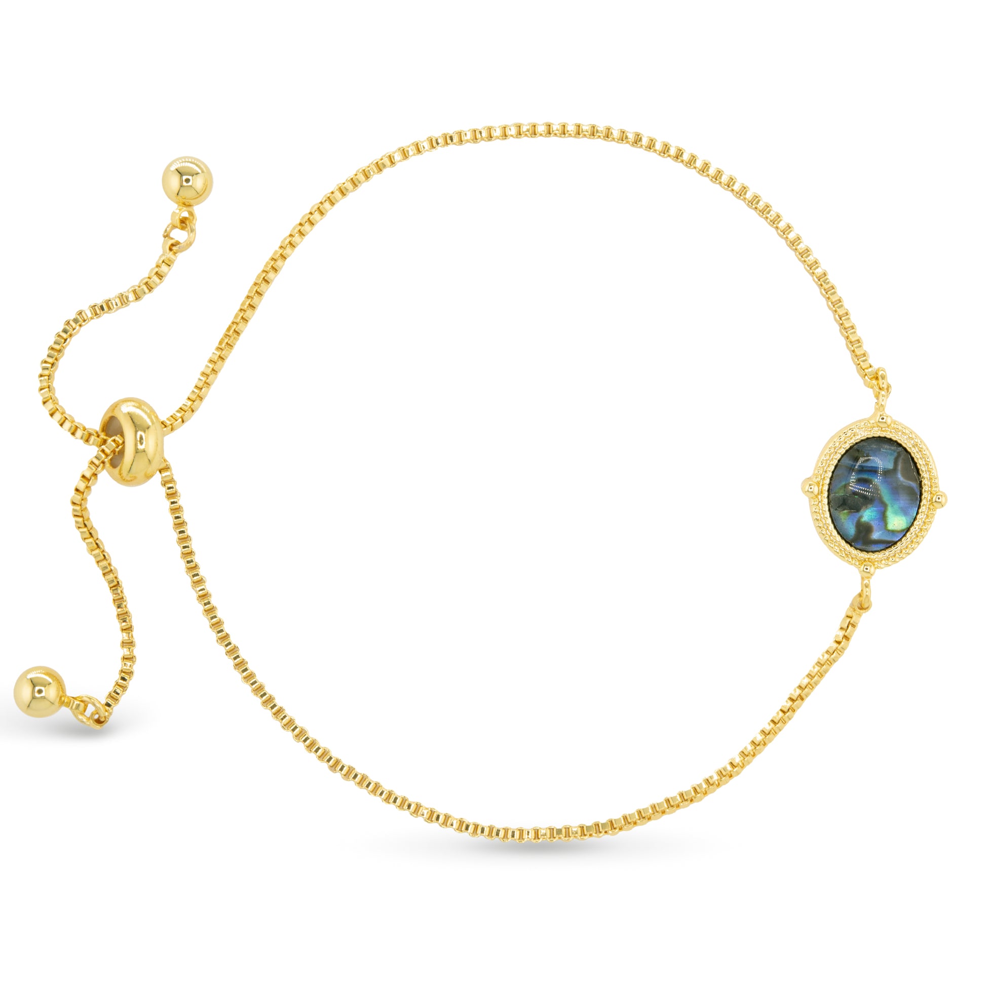This gold abalone compass bracelet features vibrant abalone accents and a stylish design perfect for everyday wear. This piece adds a touch of ocean-inspired elegance to your wrist.