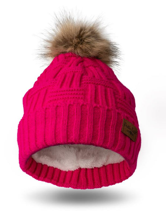 Plush Knit Hat w/Pom