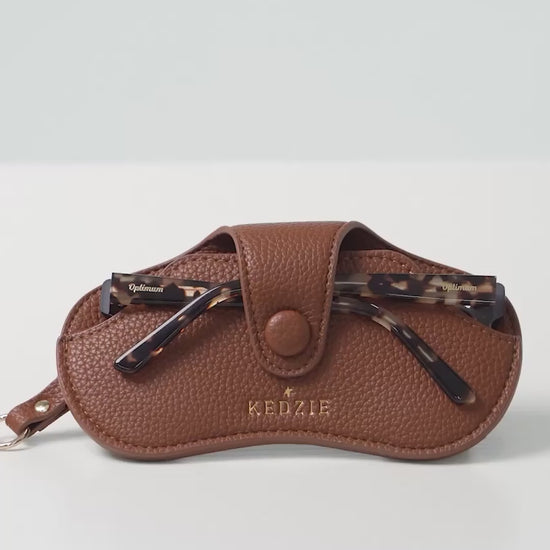 Conveniently accessible storage for glasses, sunnies & blue light blockers! These buttery soft vegan leather cases are perfect for travel, office and everyday. Customers can clip to the outside or inside of any bag to safely store eyewear on the go.