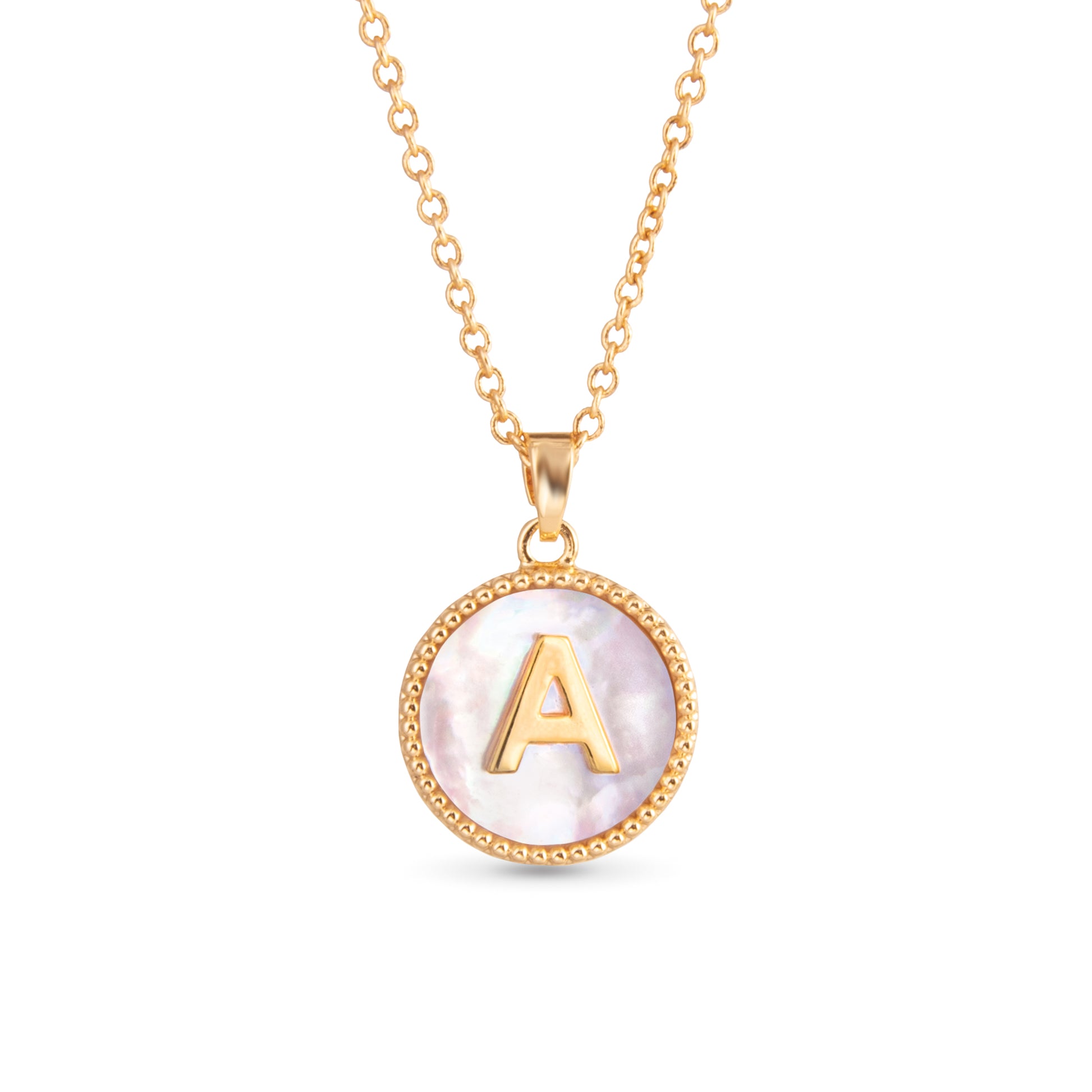 These Mother of Pearl necklaces are dipped in 18K gold and provide a simple, yet elegant look. The adjustable chain is 18" in length and the pendant is 1/2" in diameter.